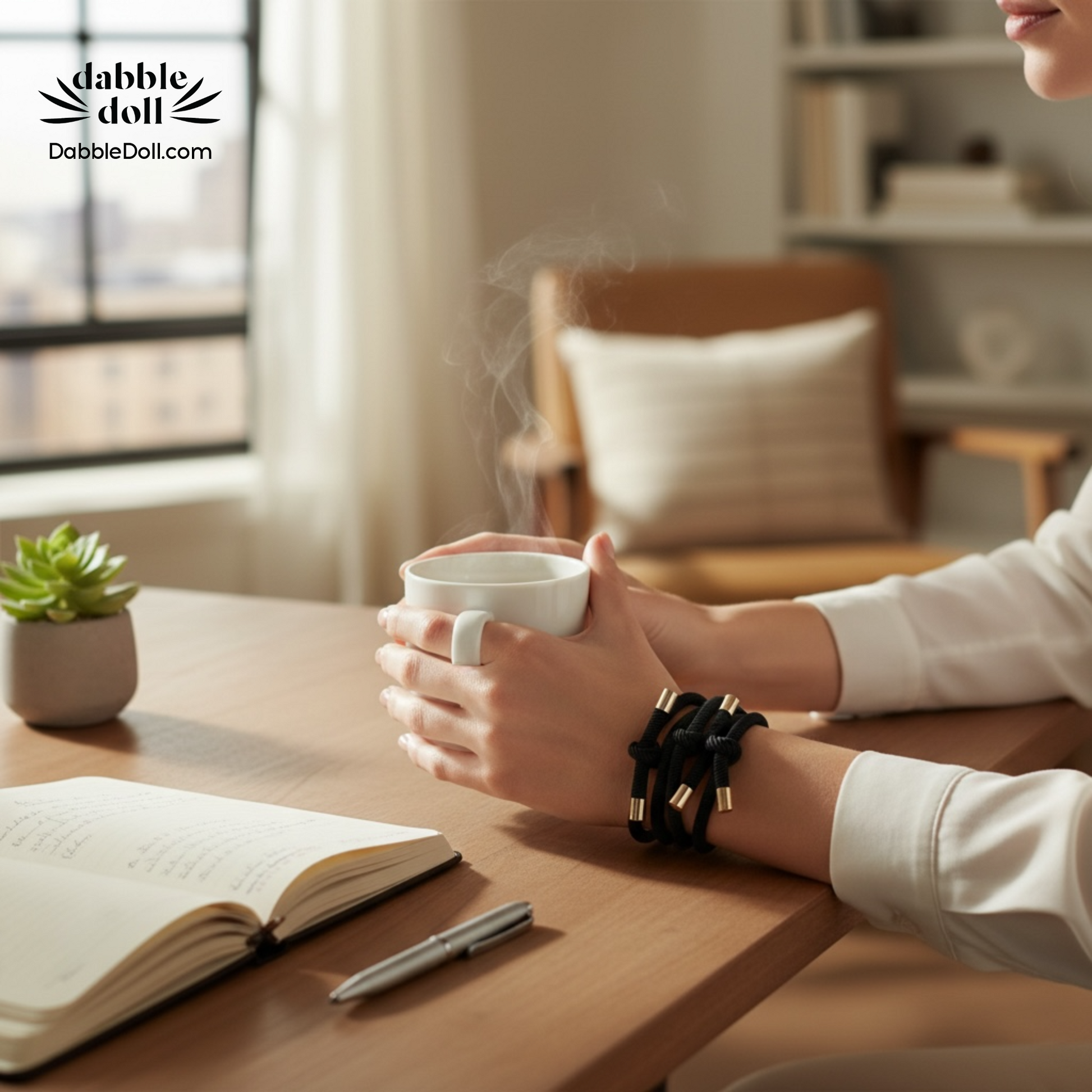 Meet your new favorite multitasker. This elegant gold-tipped hair tie bracelet looks like chic wrist jewelry but doubles as a high-quality elastic hair tie whenever you need it. No more choosing between style and function — this beauty gives you both. Keep it on your wrist for a polished touch, then pull your hair up in seconds (without sacrificing your outfit).